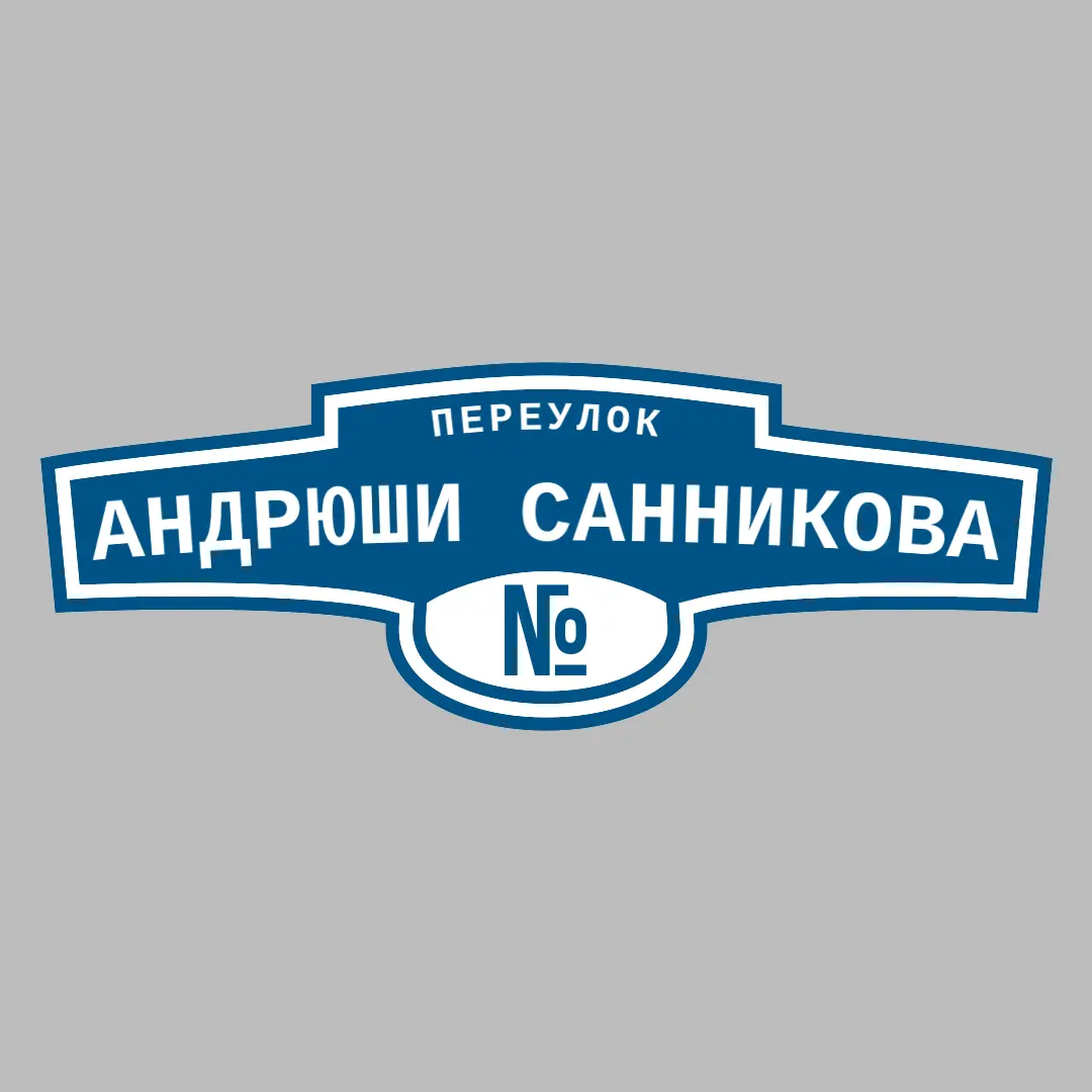 Адресная табличка "ПЕРЕУЛОК АНДРЮШИ САННИКОВА" из ПВХ и АКП — Ваш дом заметят с первого взгляда!