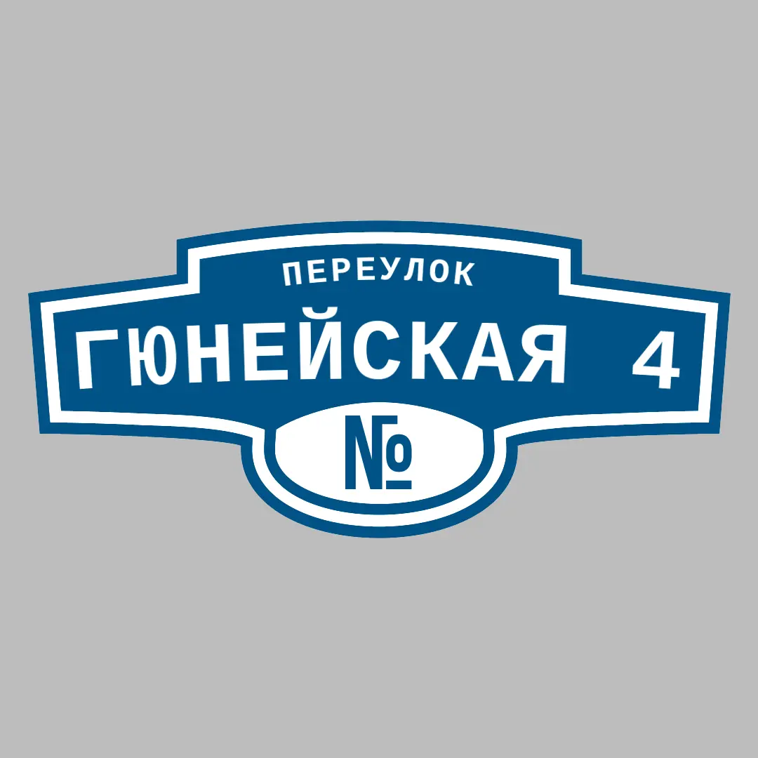 Адресная табличка "ПЕРЕУЛОК ГЮНЕЙСКАЯ 4" из ПВХ и АКП — Ваш дом заметят с первого взгляда!