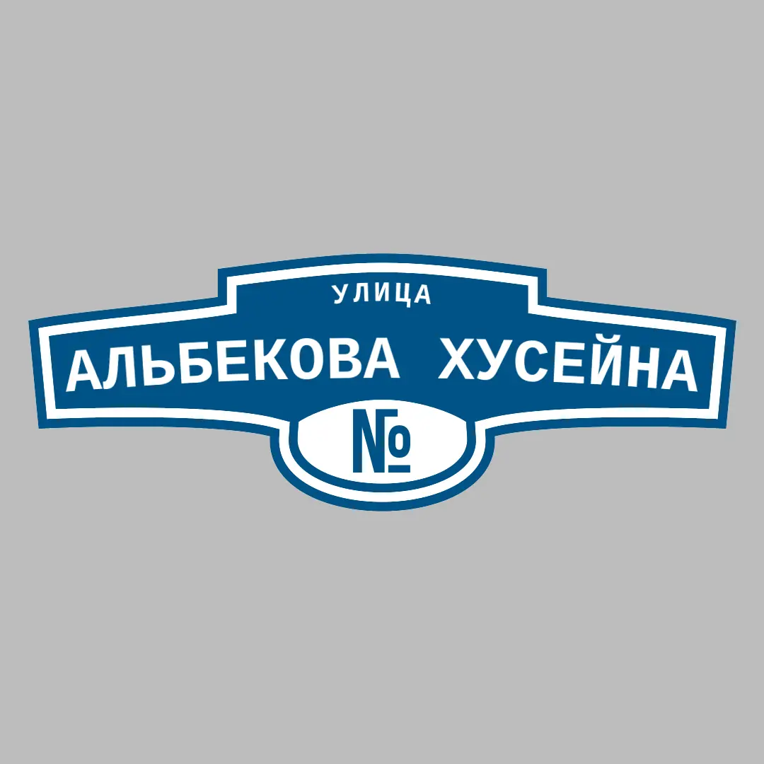 Адресная табличка "УЛИЦА АЛЬБЕКОВА ХУСЕЙНА" из ПВХ и АКП — Ваш дом заметят с первого взгляда!