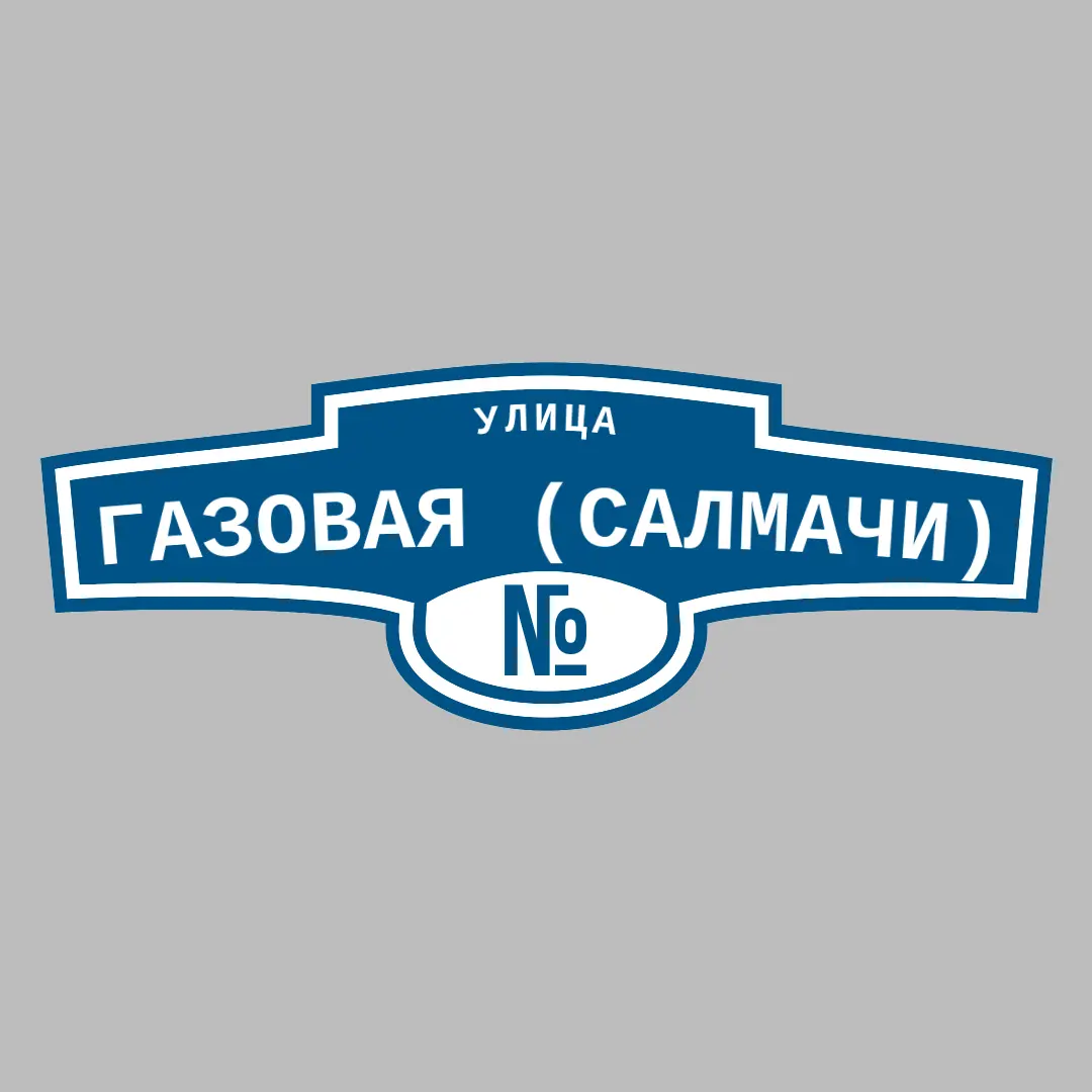 Адресная табличка "УЛИЦА ГАЗОВАЯ (САЛМАЧИ)" из ПВХ и АКП — Ваш дом заметят с первого взгляда!