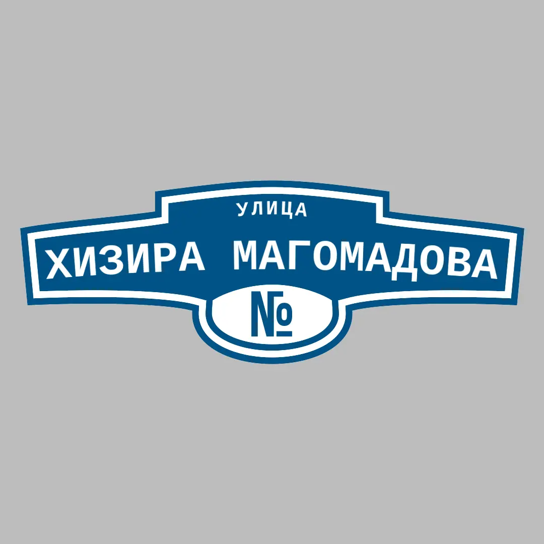 Адресная табличка "УЛИЦА ХИЗИРА МАГОМАДОВА" из ПВХ и АКП — Ваш дом заметят с первого взгляда!