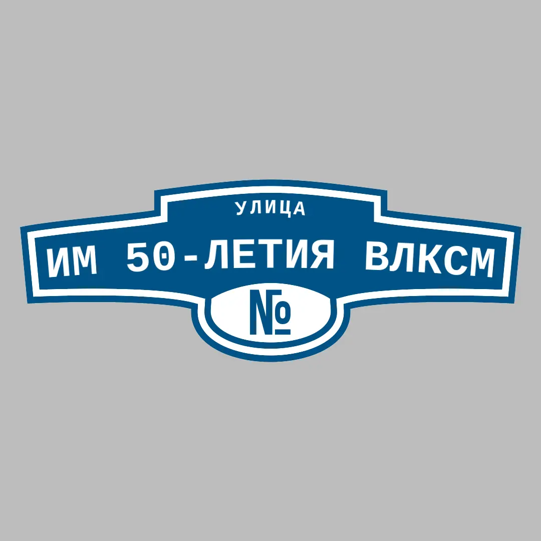Адресная табличка "УЛИЦА ИМ 50-ЛЕТИЯ ВЛКСМ" из ПВХ и АКП — Ваш дом заметят с первого взгляда!