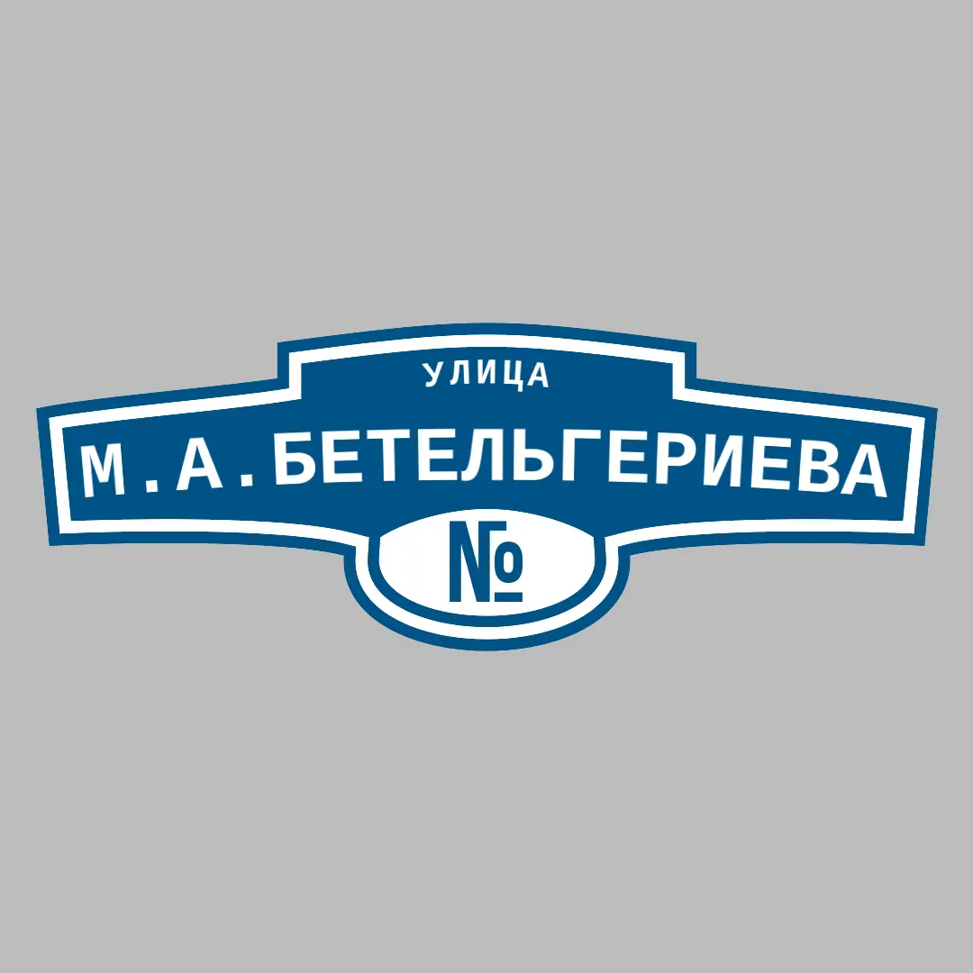 Адресная табличка "УЛИЦА М.А.БЕТЕЛЬГЕРИЕВА" из ПВХ и АКП — Ваш дом заметят с первого взгляда!