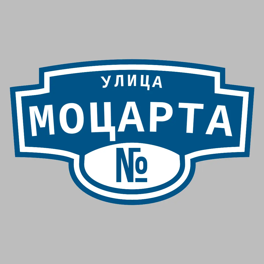 Адресная табличка улица Моцарта на дом