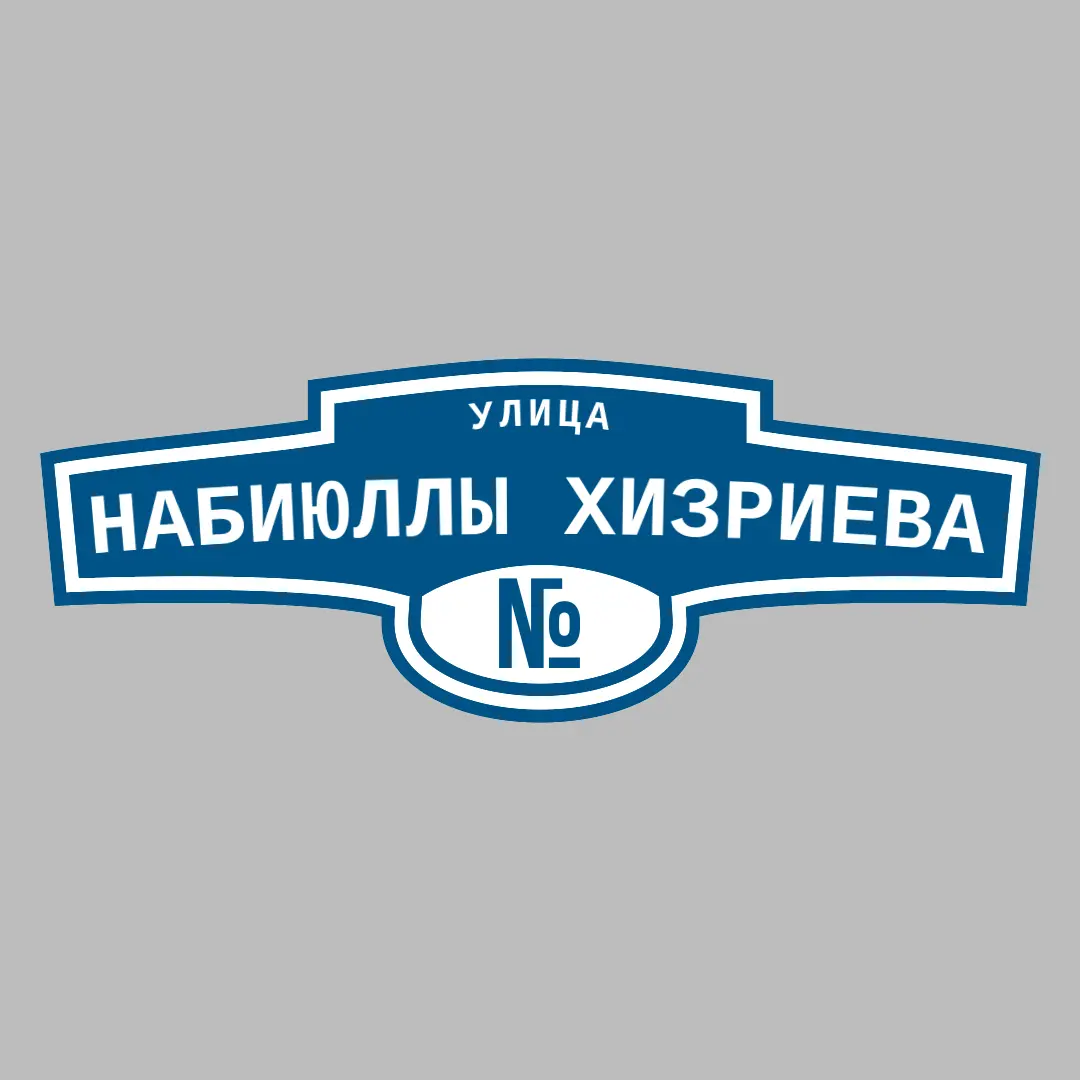 Адресная табличка "УЛИЦА НАБИЮЛЛЫ ХИЗРИЕВА" из ПВХ и АКП — Ваш дом заметят с первого взгляда!
