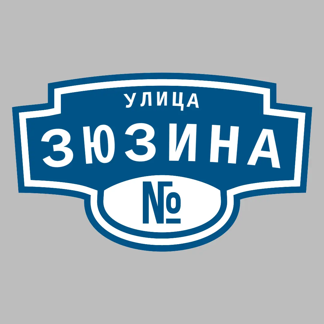 Адресная табличка "УЛИЦА ЗЮЗИНА" из ПВХ и АКП — Ваш дом заметят с первого взгляда!