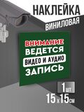 Наклейка "Ведется видео и аудио запись", 15х15 см, темно-зеленая