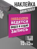 Наклейка "Ведется видео и аудио запись", 15х15 см, сиреневая