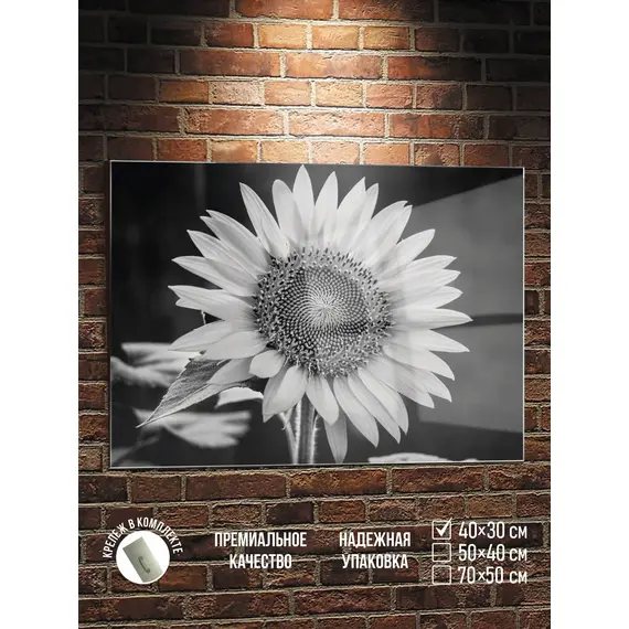 Картина на стекле Черно Белое Фото Подсолнух 40х30 см
