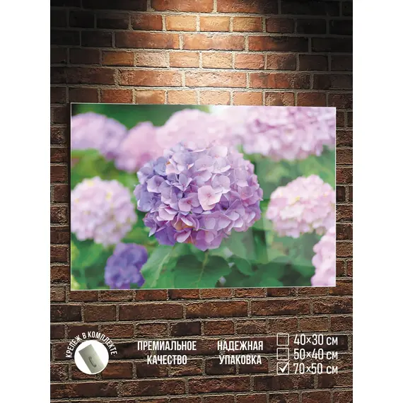Картина "Цветущая Гортензия В Парке" 70х50 см на стекле