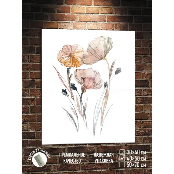 - 3 размера на выбор - 30×40, 40×50, 50×70 см. Подберите идеальный вариант для вашей стены