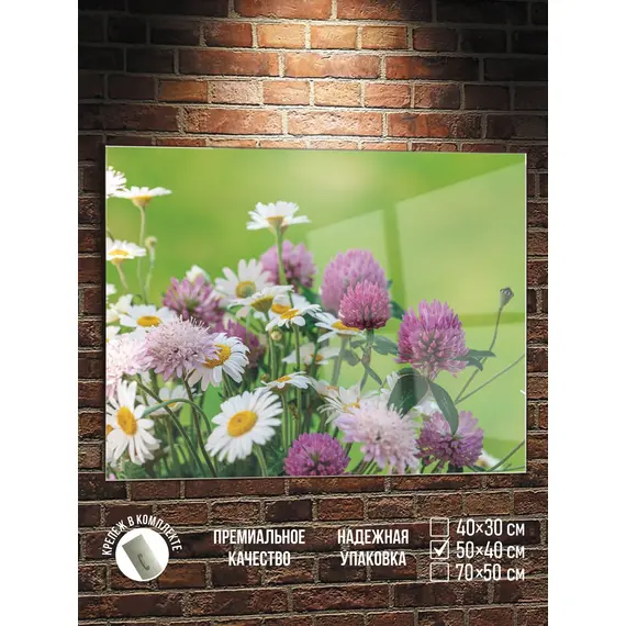Добавьте в свой дом ноту искусства — закажите картину на стекле "Цветы Ромашки И Клевер" уже сегодня!