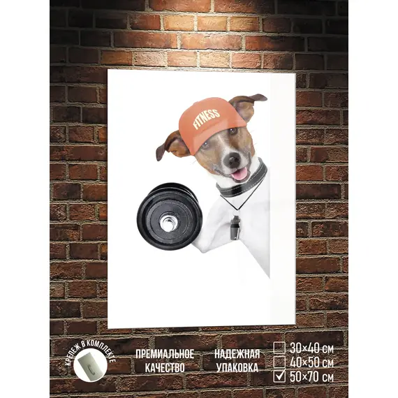Картина "Фитнес Собака" 50х70 см на стекле