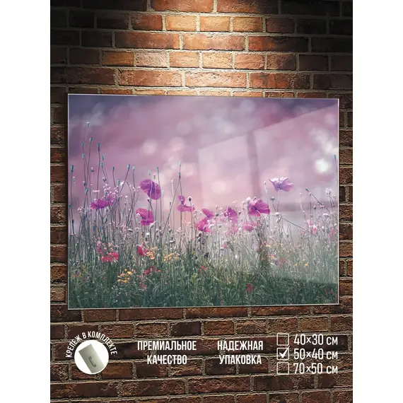 Добавьте в свой дом ноту искусства — закажите картину на стекле "Розовые Цветы На Лугу" уже сегодня!