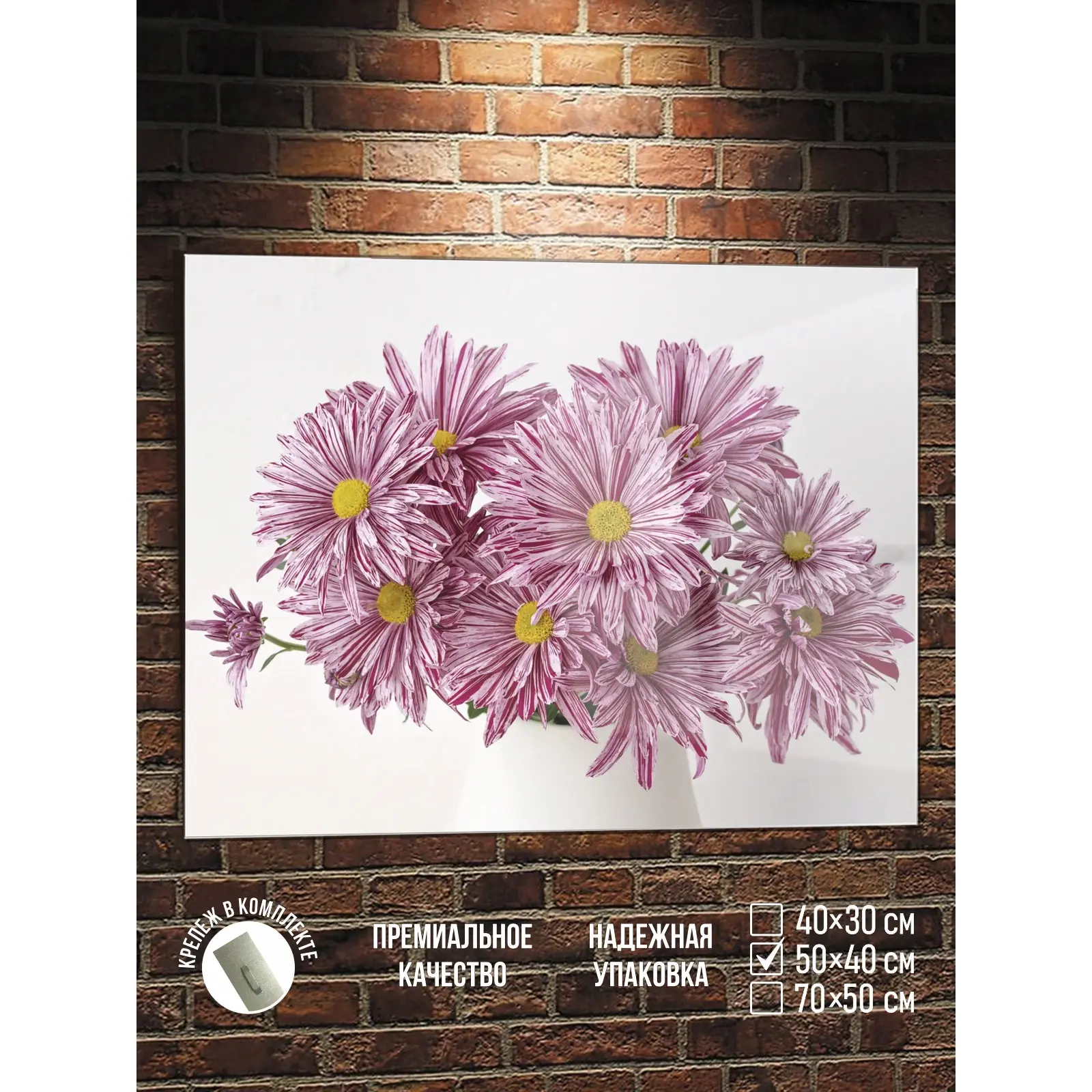 - 3 размера на выбор - 30×40, 40×50, 50×70 см. Подберите идеальный вариант для вашей стены