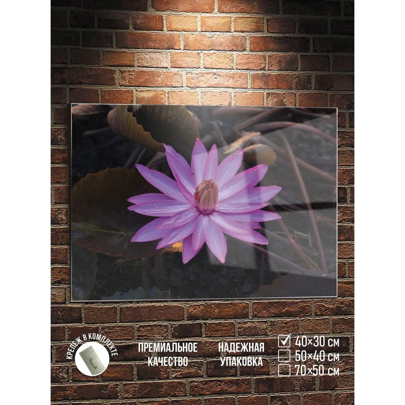 Картина "Розовый Лотос Темный Фон" 40х30 см на стекле