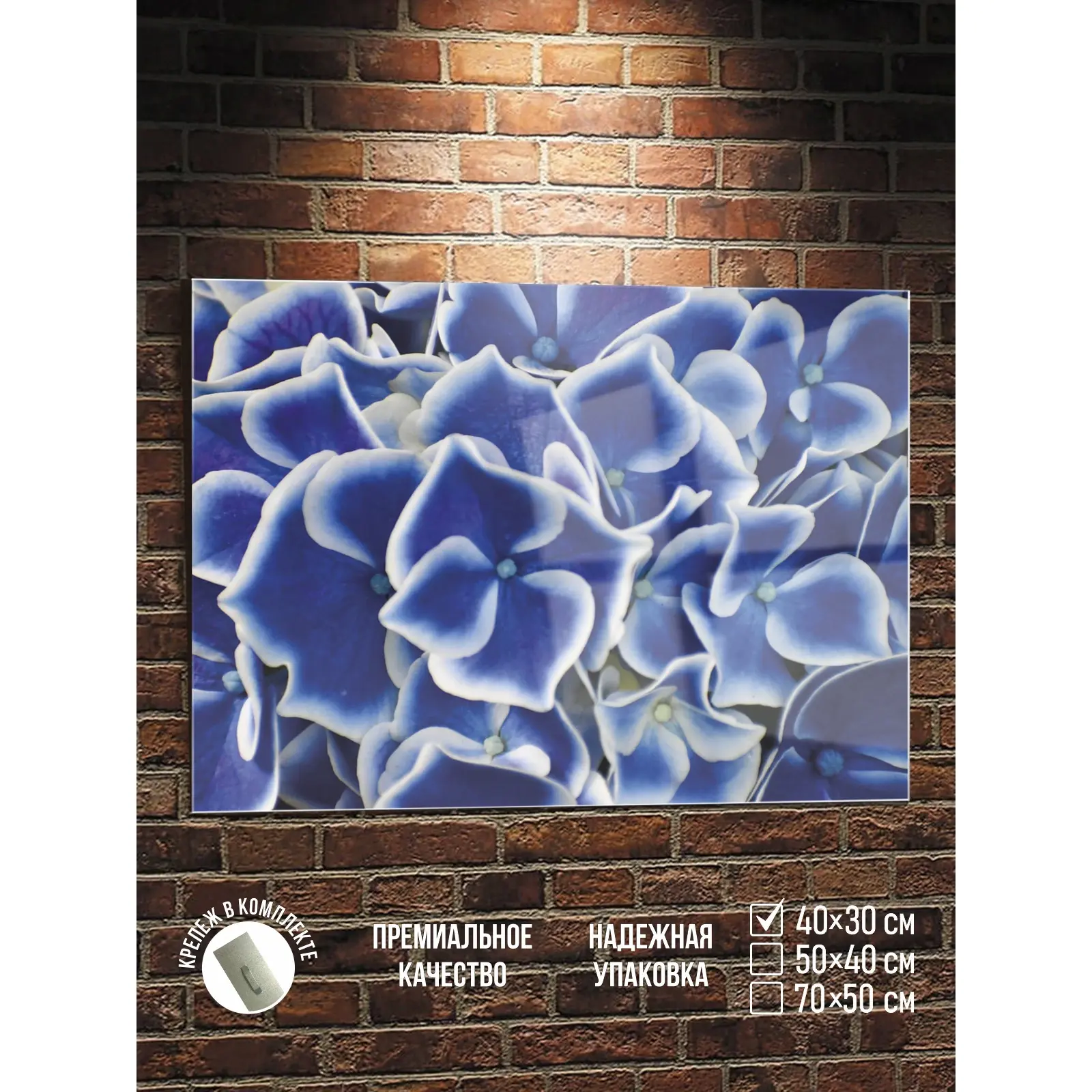Картина "Синяя Гортензия Крупный План" 40х30 см на стекле