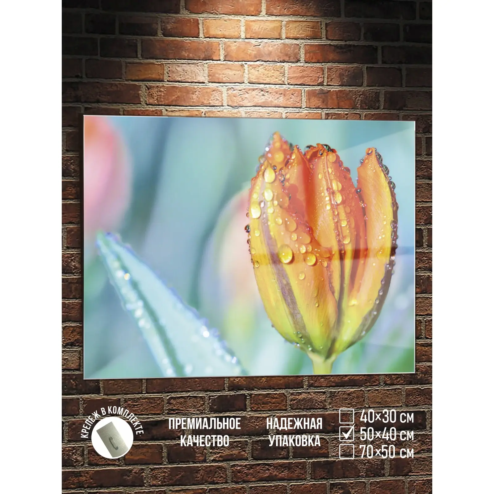 Картина на стекле Тюльпан С Каплями Воды 50х40 см