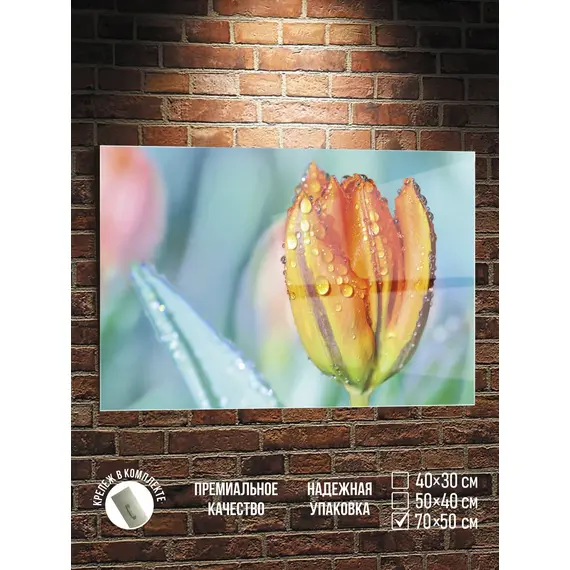 Картина на стекле Тюльпан С Каплями Воды 70х50 см