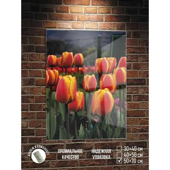Картина "Яркие Красивые Тюльпаны" 50х70 см на стекле