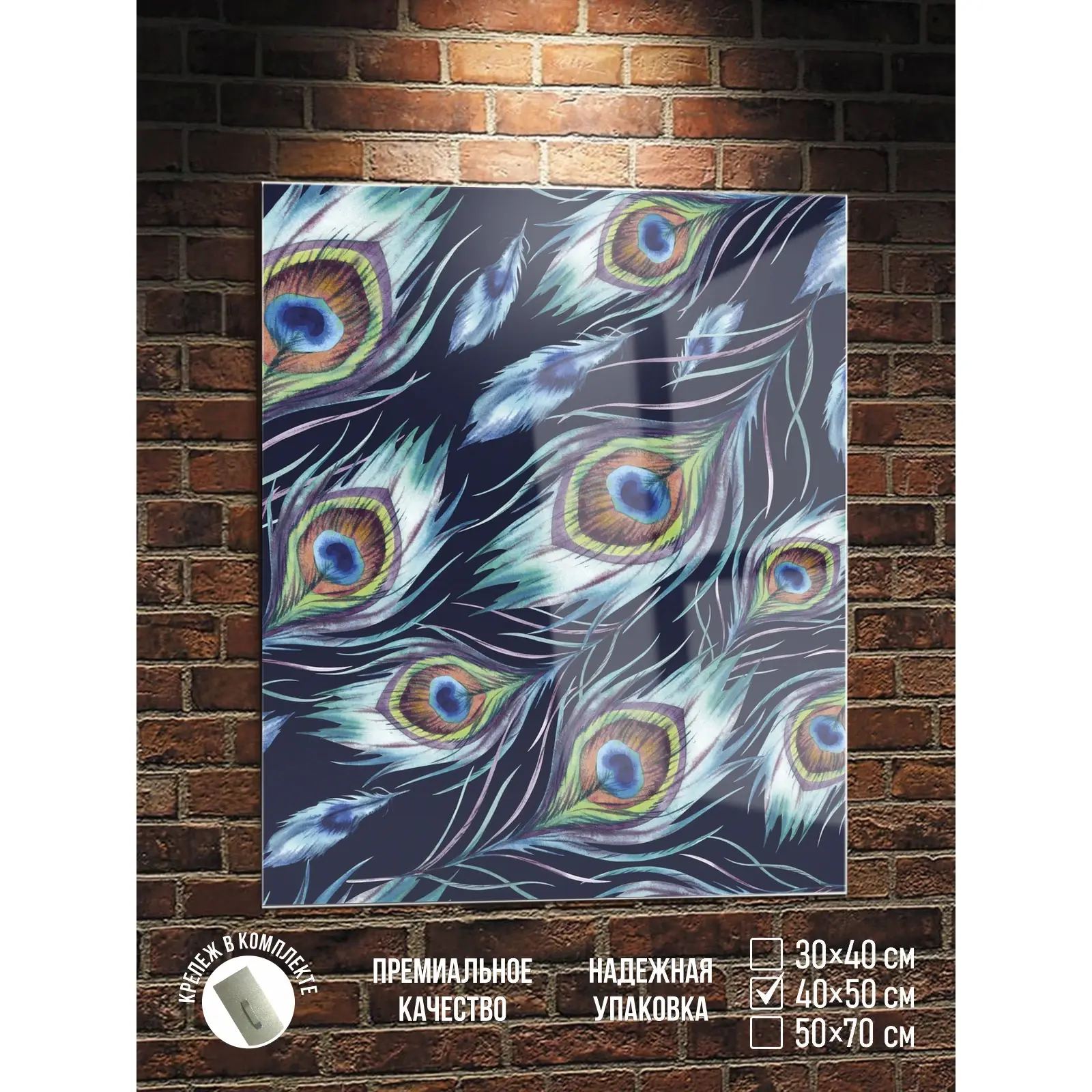 Картина "Яркие Перья Павлина" 40х50 см на стекле