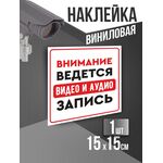 Наклейка "Ведется видео и аудио запись", 15х15 см, белая