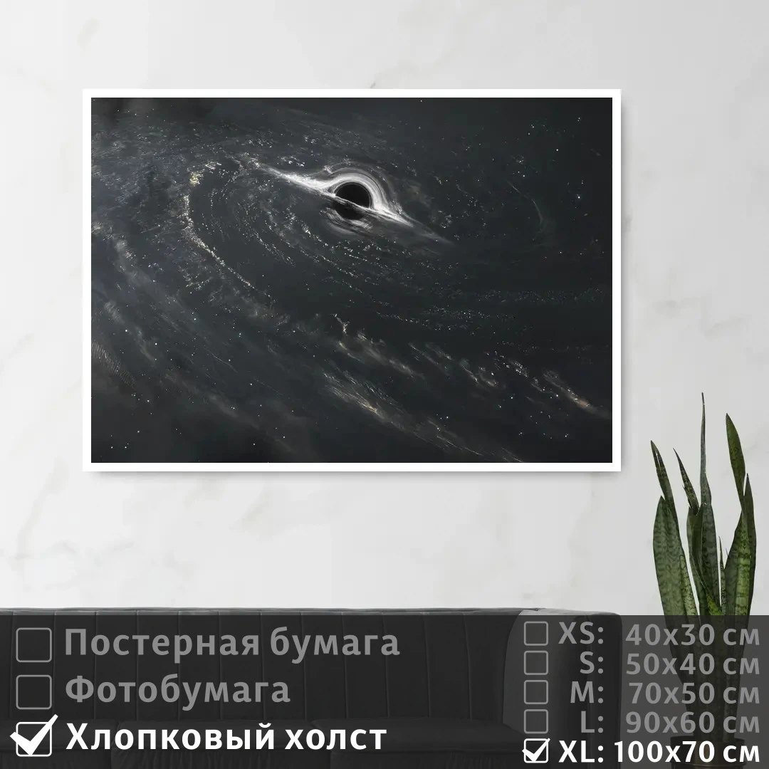 Оживите стены уникальным декором! Плакат Черная Дыра В Космическом Пространстве 100х70 см печатается на трех материалах: