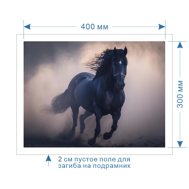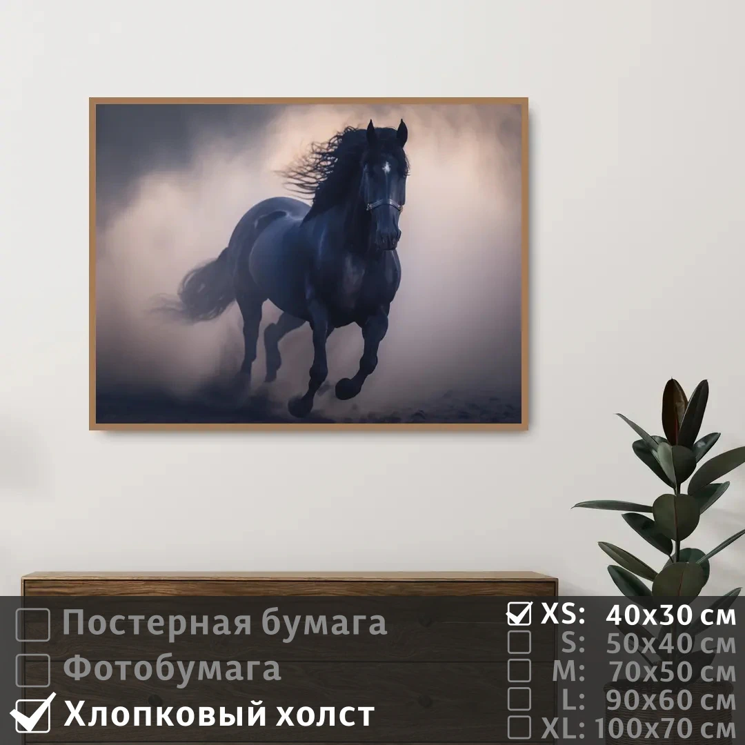 Оживите стены уникальным декором! Плакат Черная Лошадь Скачет По Песку 40х30 см печатается на трех материалах: