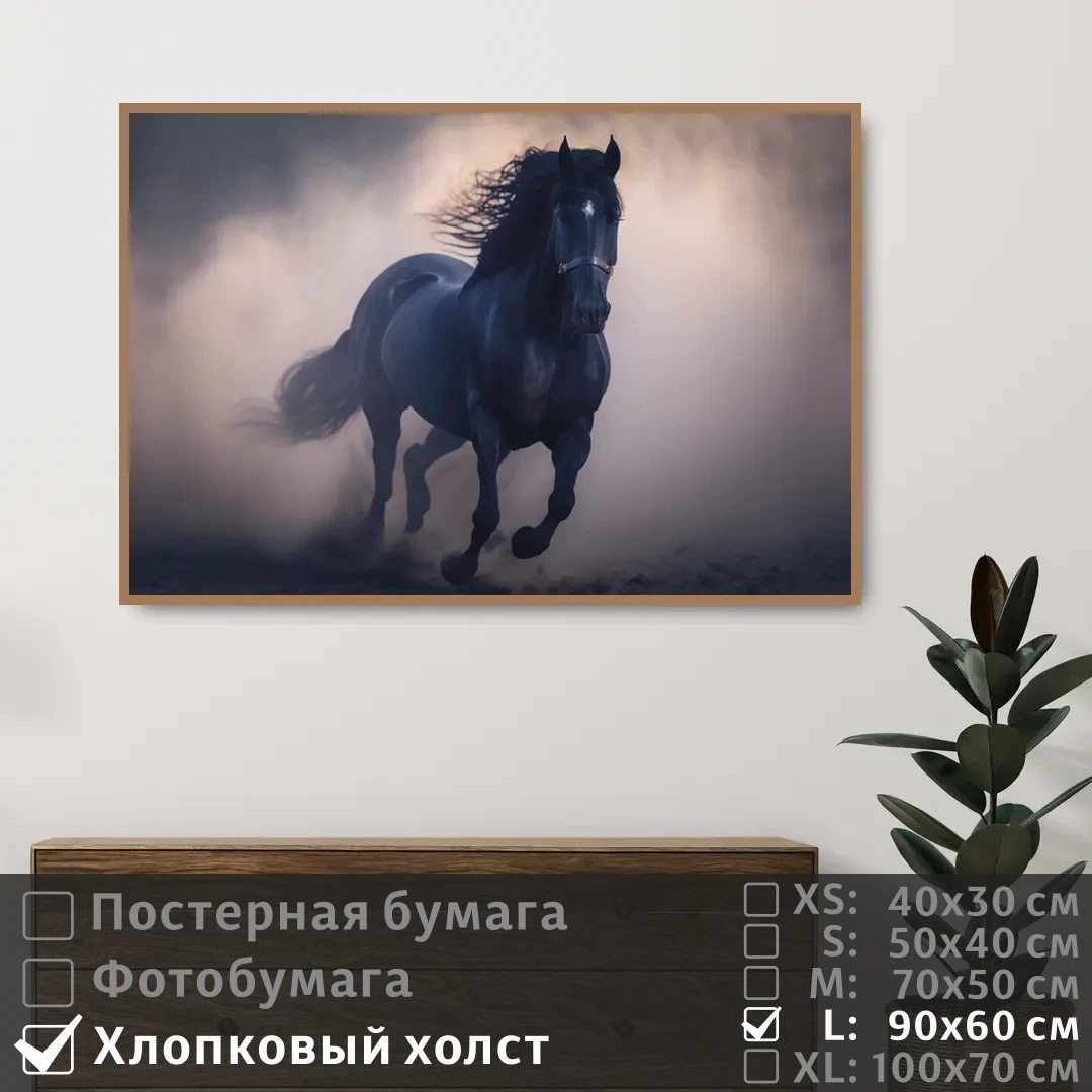 Холст на стену "Черная Лошадь Скачет По Песку" 90х60 см