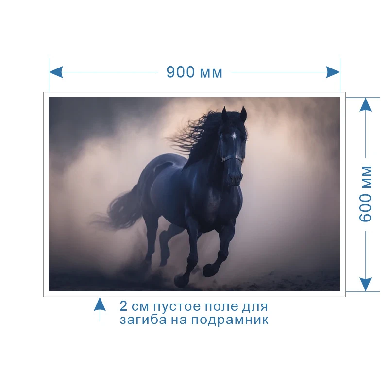 Оживите стены уникальным декором! Плакат Черная Лошадь Скачет По Песку 90х60 см печатается на трех материалах: