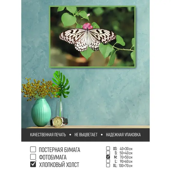 Оживите стены уникальным декором! Плакат Черно Белая Бабочка И Ветка 70х50 см печатается на трех материалах: