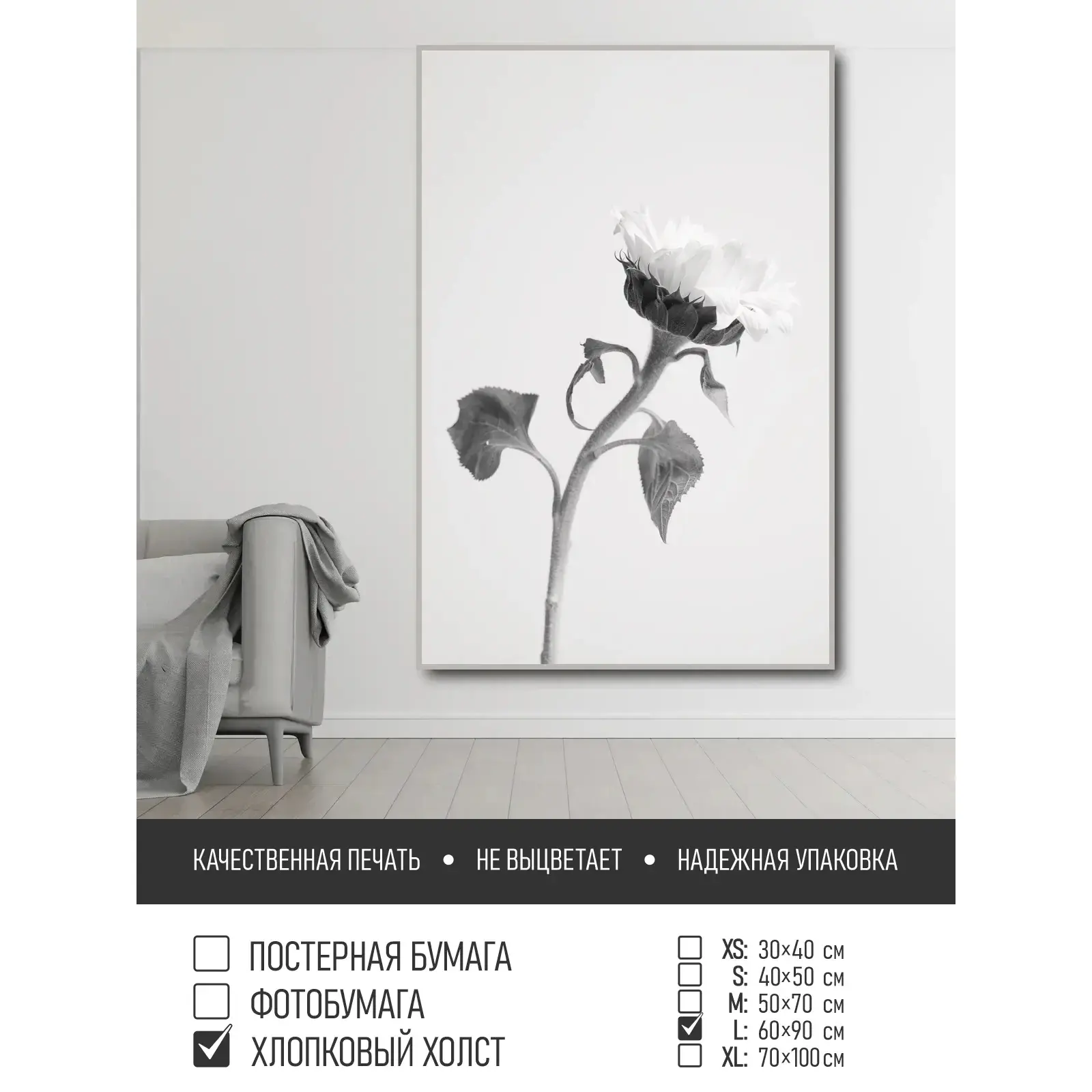 Оживите стены уникальным декором! Плакат Черно Белое Фото Цветок 60х90 см печатается на трех материалах: