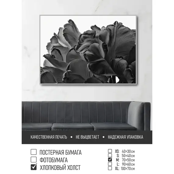 Оживите стены уникальным декором! Плакат Черно Белое Фото Тюльпаны 70х50 см печатается на трех материалах: