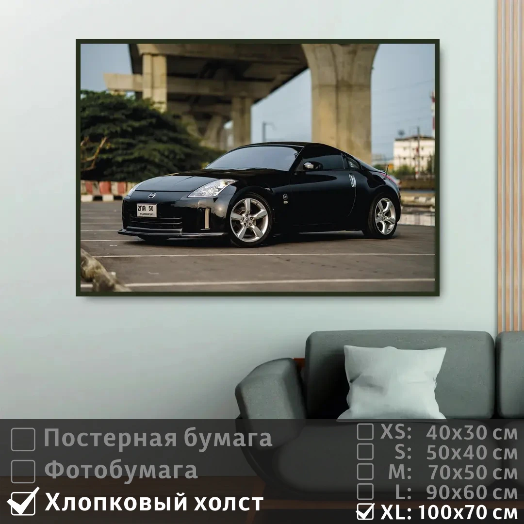 Оживите стены уникальным декором! Плакат Черный Ниссан 350Z Fairlady 100х70 см печатается на трех материалах: