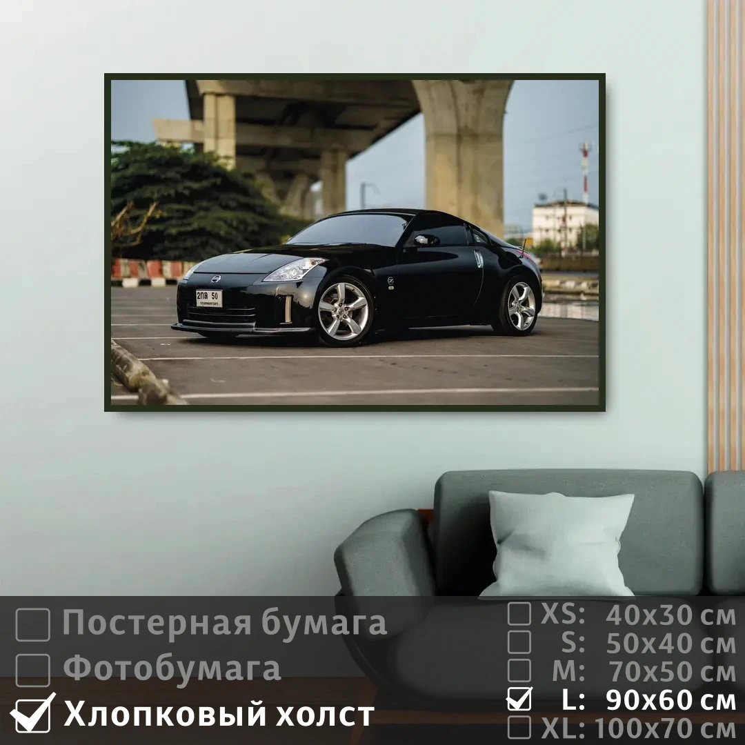 Оживите стены уникальным декором! Плакат Черный Ниссан 350Z Fairlady 90х60 см печатается на трех материалах: