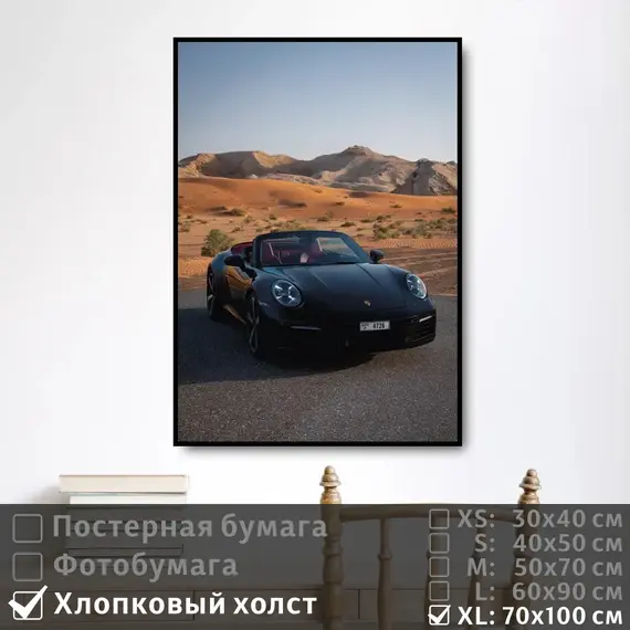 Оживите стены уникальным декором! Плакат Черный Порше 70х100 см печатается на трех материалах: