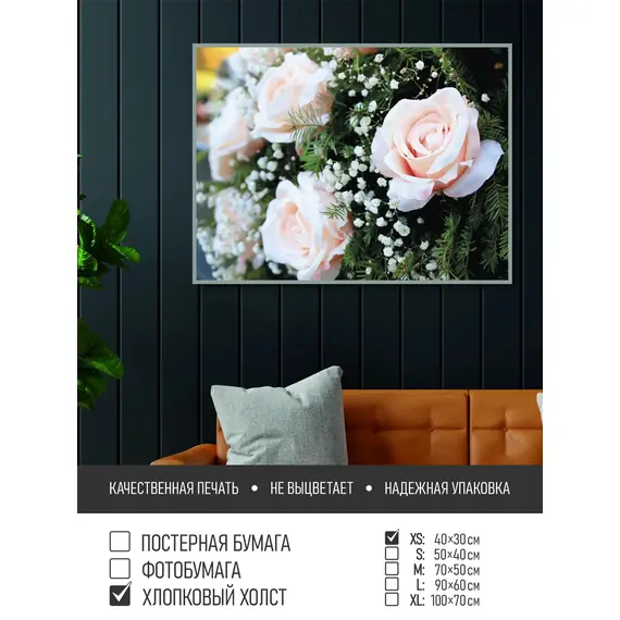 Оживите стены уникальным декором! Плакат Цветочная Композиция Розы 40х30 см печатается на трех материалах: