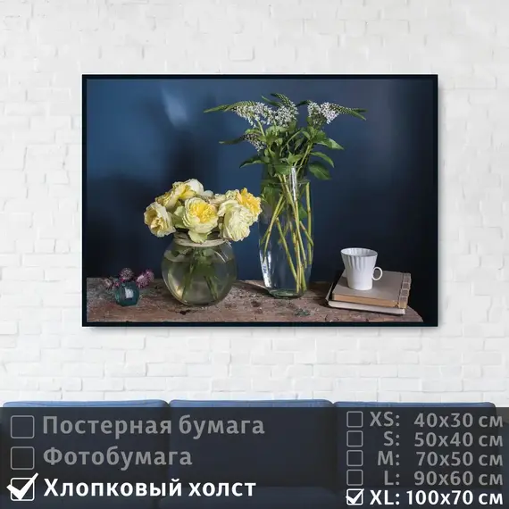 Оживите стены уникальным декором! Плакат Цветочный Натюрморт 100х70 см печатается на трех материалах: