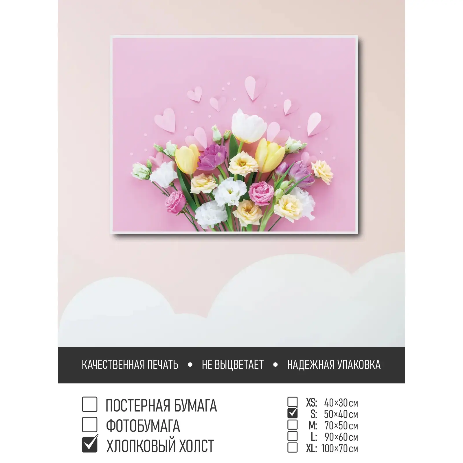 Оживите стены уникальным декором! Плакат Цветы И Бумажные Сердечки 50х40 см печатается на трех материалах: