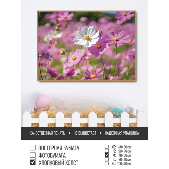 Оживите стены уникальным декором! Плакат Цветы Космеи 70х50 см печатается на трех материалах:
