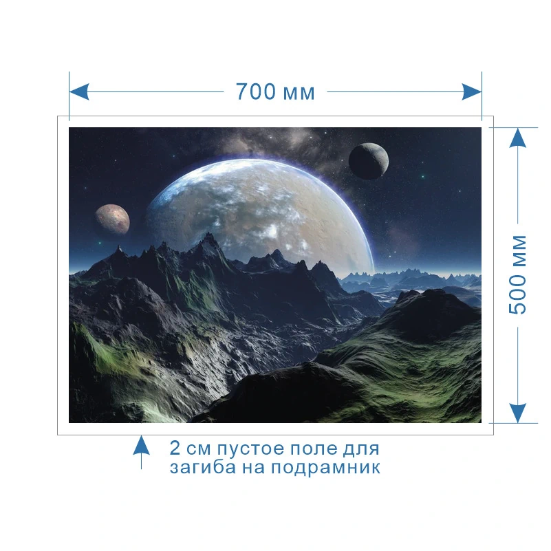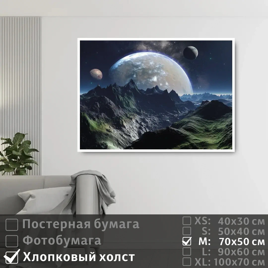 Оживите стены уникальным декором! Плакат Фантастическая Гора В Галактике С Планетами 70х50 см печатается на трех материалах: