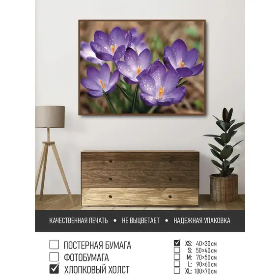 Оживите стены уникальным декором! Плакат Фиолетовые Цветы Крокуса 40х30 см печатается на трех материалах: