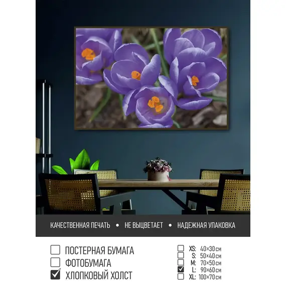 Оживите стены уникальным декором! Плакат Фиолетовые Крокусы 90х60 см печатается на трех материалах: