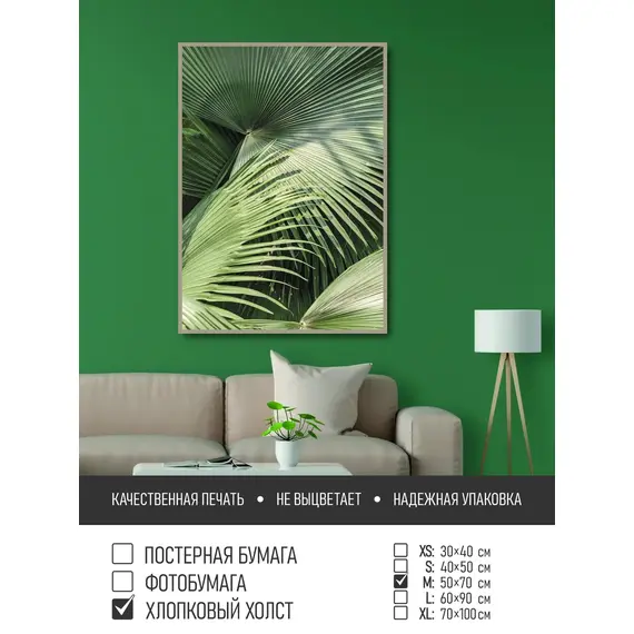 Оживите стены уникальным декором! Плакат Фон Тропические Листья 50х70 см печатается на трех материалах: