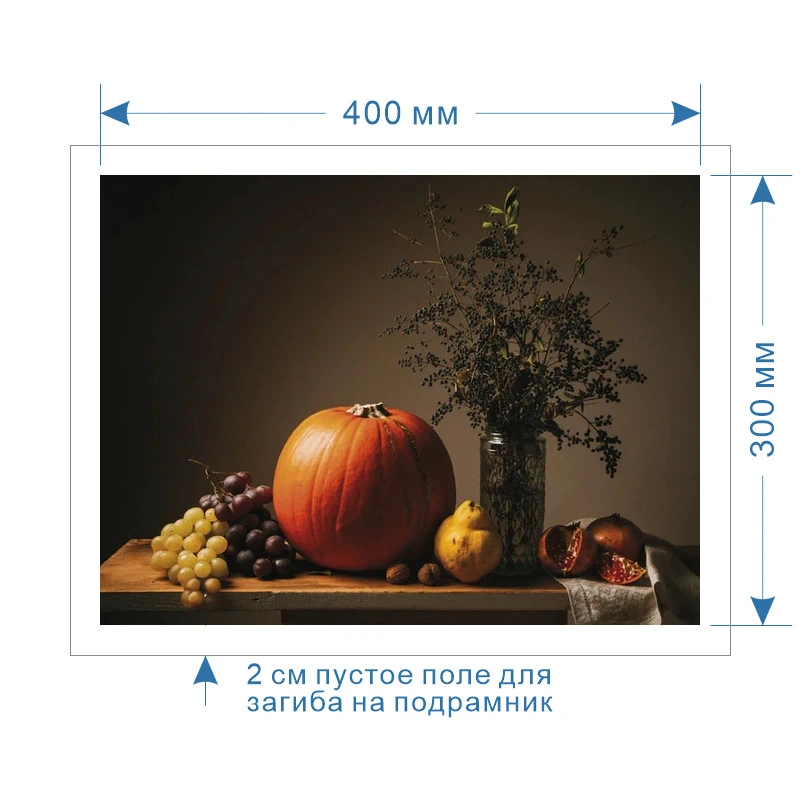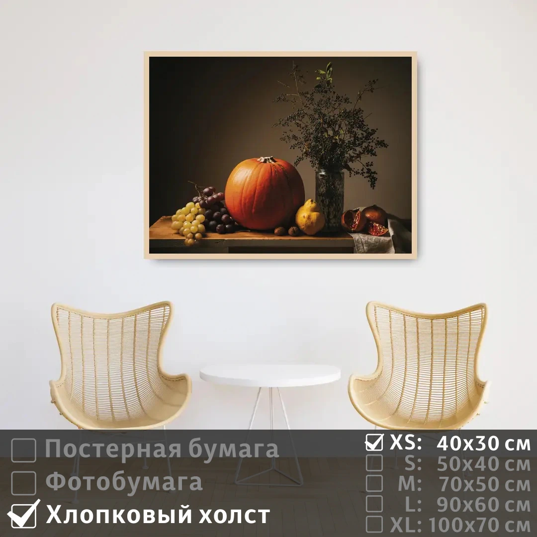 Оживите стены уникальным декором! Плакат Фрукты И Овощи На Столе С Полевыми Цветами 40х30 см печатается на трех материалах: