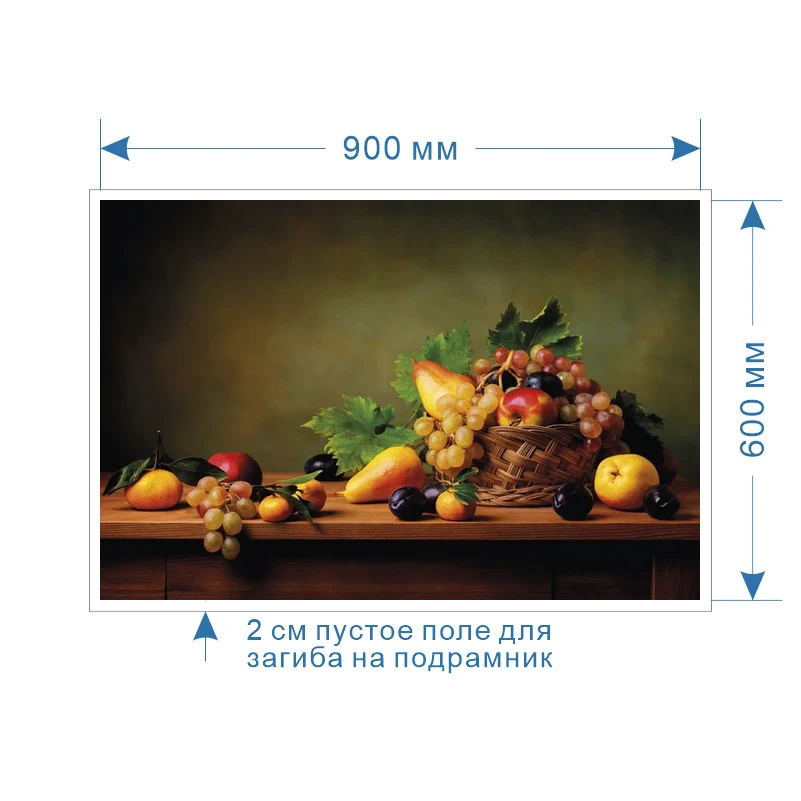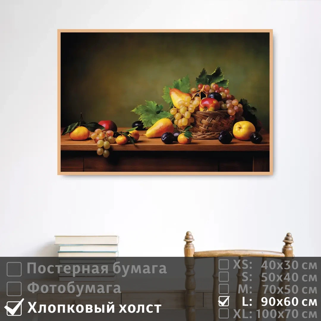 Оживите стены уникальным декором! Плакат Фрукты С Листьями В Корзинке 90х60 см печатается на трех материалах: