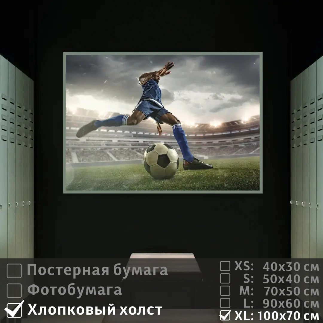 Оживите стены уникальным декором! Плакат Футбол Спортсмен 100х70 см печатается на трех материалах: