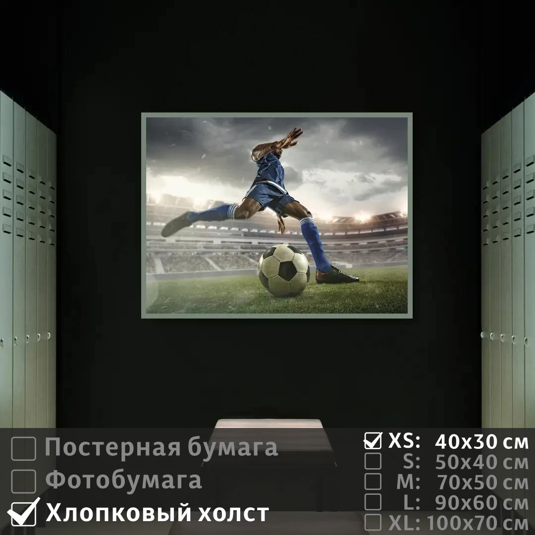 Оживите стены уникальным декором! Плакат Футбол Спортсмен 40х30 см печатается на трех материалах: