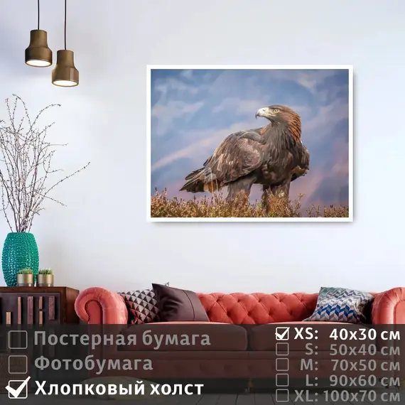 Оживите стены уникальным декором! Плакат Хищная Птица Смотрит Вдаль 40х30 см печатается на трех материалах: