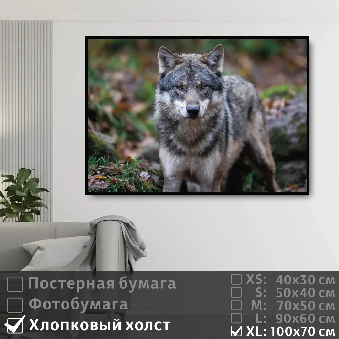 Оживите стены уникальным декором! Плакат Хищный Волк 100х70 см печатается на трех материалах: